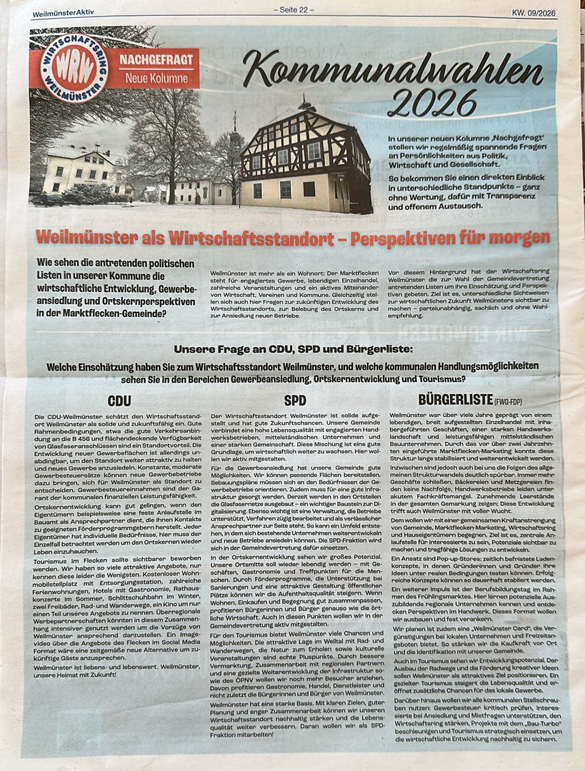 Am 28. Februar 2026 besuchten die Kandidatinnen und Kandidaten der Bürgerliste den in Wolfenhausen ansässigen Landhandel Raab. Nach der freundlichen Begrüßung durch die Geschäftsführung – Herrn Dietrich Raab, seine Frau Petra Raab sowie Sohn Janis Raab – erhielten die Besucher zunächst eine Führung durch das Lager und die Verkaufsräume des Landhandels.