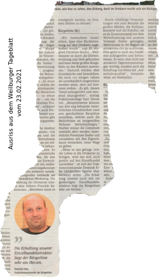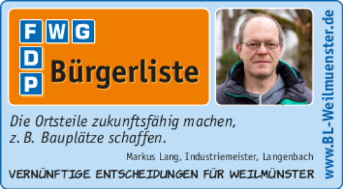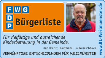 Deswegen ist ein Eckpunkt der Bürgerliste Weilmünster für die nächsten Jahre: