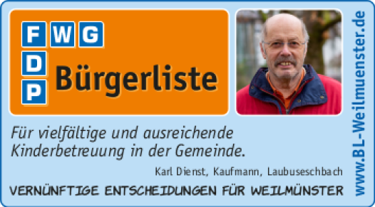Diese Pläne müssen wir vorantreiben, um zum Wohl der Eltern und Kinder beizutragen, für Weilmünster und alle Ortsteile.
