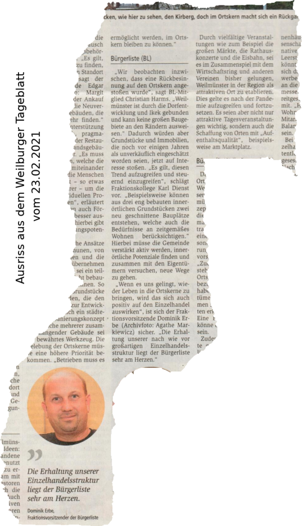 Heute war im Weilburger Tageblatt der Artikel über die Bürgerliste.